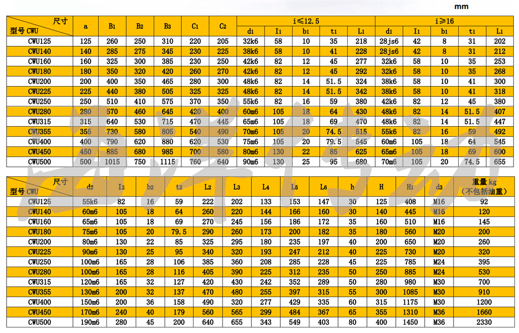 說明:海洋傳動-CW 系列圓弧齒圓柱蝸桿減速機采用單級蝸桿減速傳動,是按照中華人民共和國國家標準(JB/7935-1999)生產,全系列共包括三種型號CWU、CWS、CWO,16種中心距,12種減速機比。輸入功率范圍在0.39~189KW之間,輸出扭矩在107~13500N·m之間。適用于冶金、礦山、運輸、水泥、建筑、化工、紡織、輕工、能源、環境等行業的機械傳動。