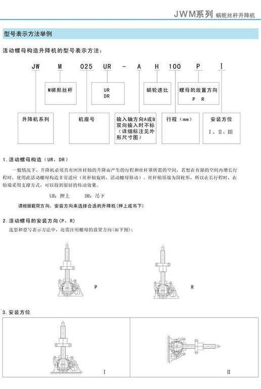 JWM絲桿升降機基本形式、止旋構(gòu)造及型號表示方法