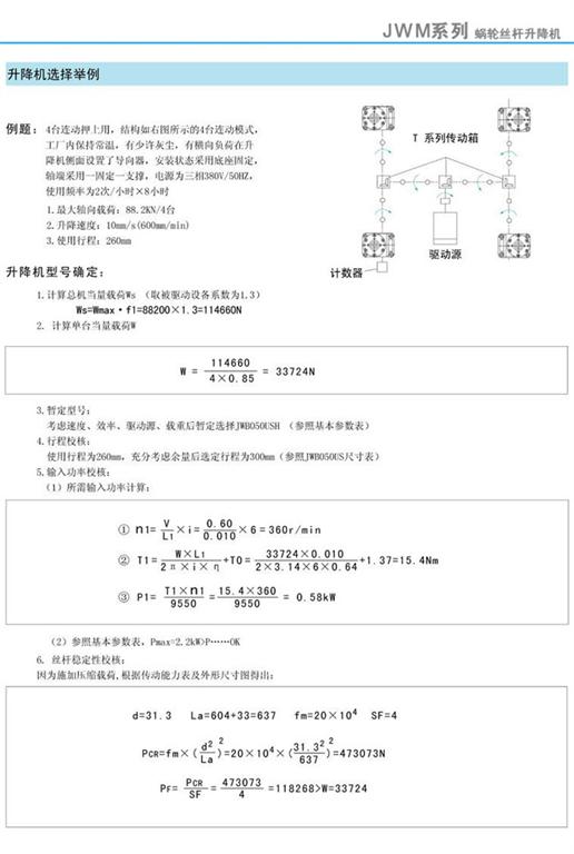 減速機(jī)|蝸輪絲桿升降機(jī)-JWM蝸輪絲桿升降機(jī)選擇舉例-海洋傳動(dòng)