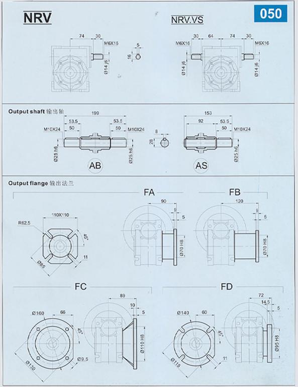 NMRV/RV50蝸輪蝸桿減速機(jī)安裝尺寸