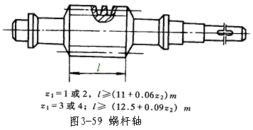 蝸桿的螺旋部分直徑不大,所以常和軸制成一體,稱為蝸桿軸,如圖3-59所示。